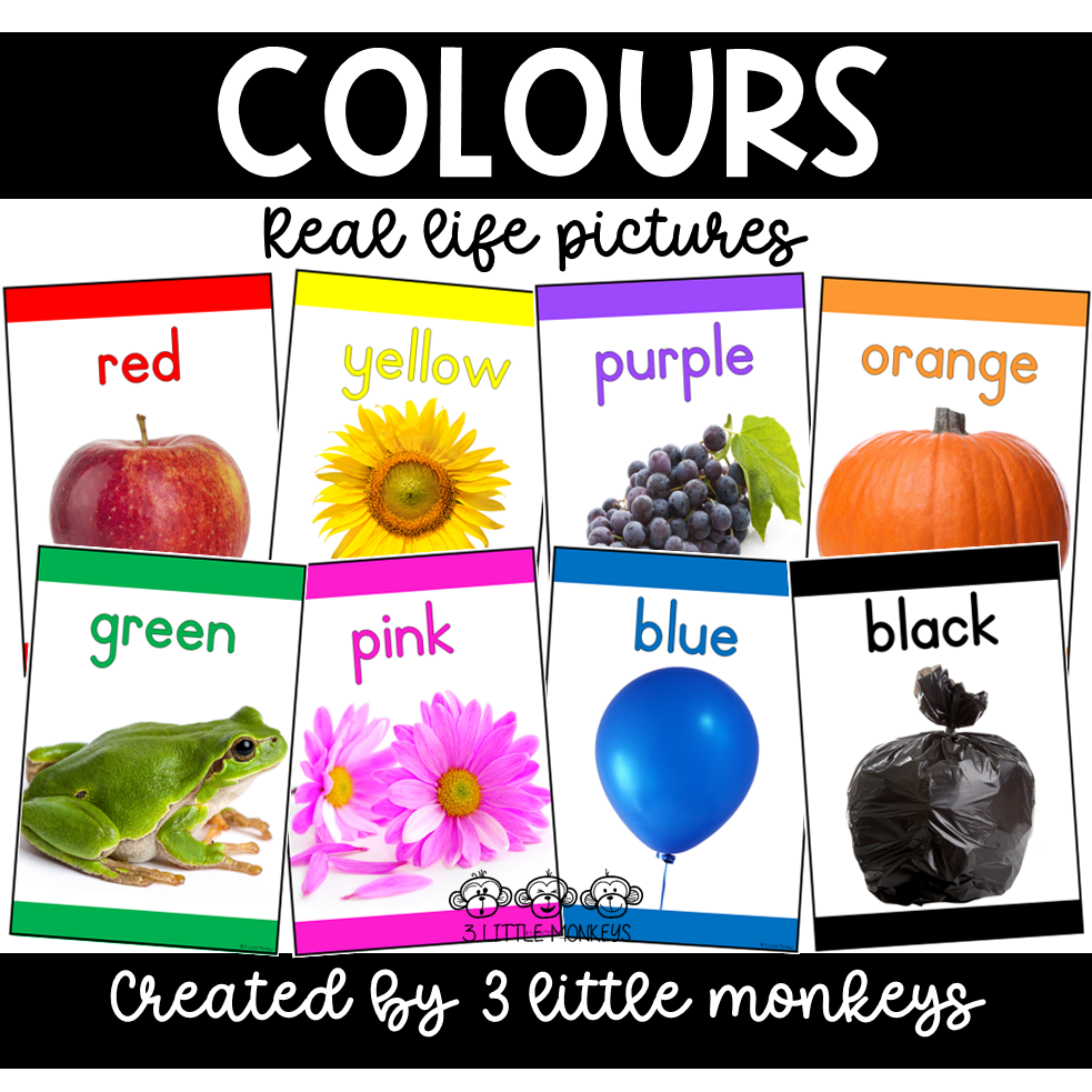Each chart features a real-life object to visually represent the colour, making it easy and engaging for children to learn colour recognition.