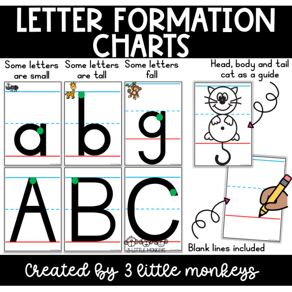 This letter formation chart set includes A4 printable charts designed to support correct letter formation using handwriting lines.